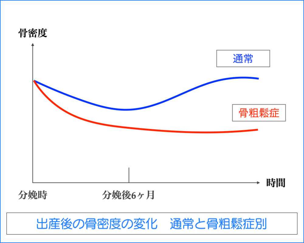 通常の閉経後骨粗鬆症もエストロゲンの低下が問題ですが、妊娠後骨粗鬆症の場合は低下の程度が急激であるため一気に骨の生成のバランスが崩れてしまい骨が脆くなってしまいます。