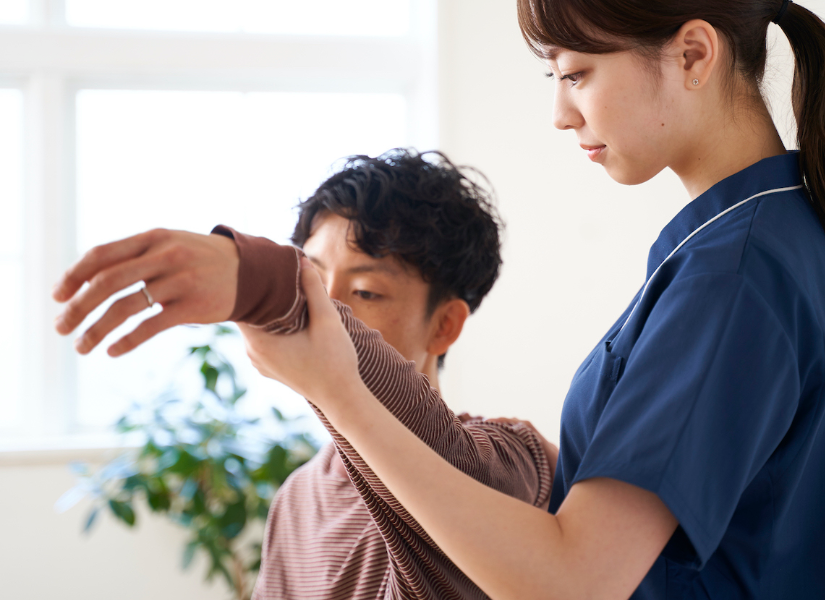 国家資格である理学療法士による専門的なリハビリテーションを当院では行っております。機械に頼らず『人の手』によるリハビリを重視して、医師からの指示のもとで的確な治療プログラムを作成します。個人ごとに最適なリハビリを提案して最高の結果を目指します。