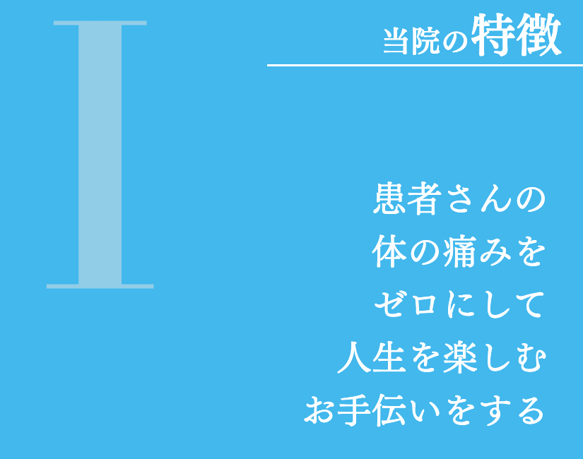 体の痛みをとること。それにより生活や趣味、仕事など様々な活動の質が改善していくと考えています。