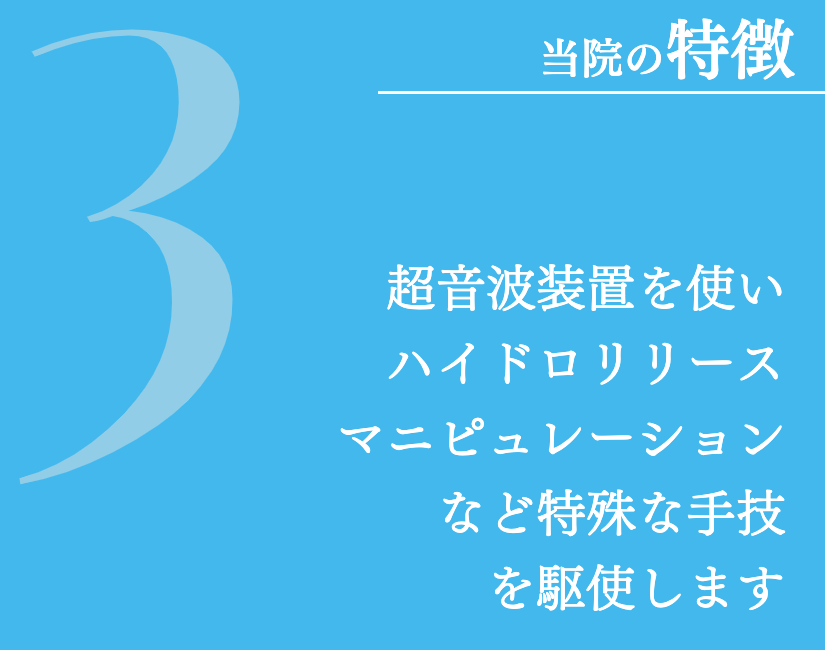 「ハイドロリリース」やなど特殊な手技で痛みと体の動きにくさを徹底して改善していきます。