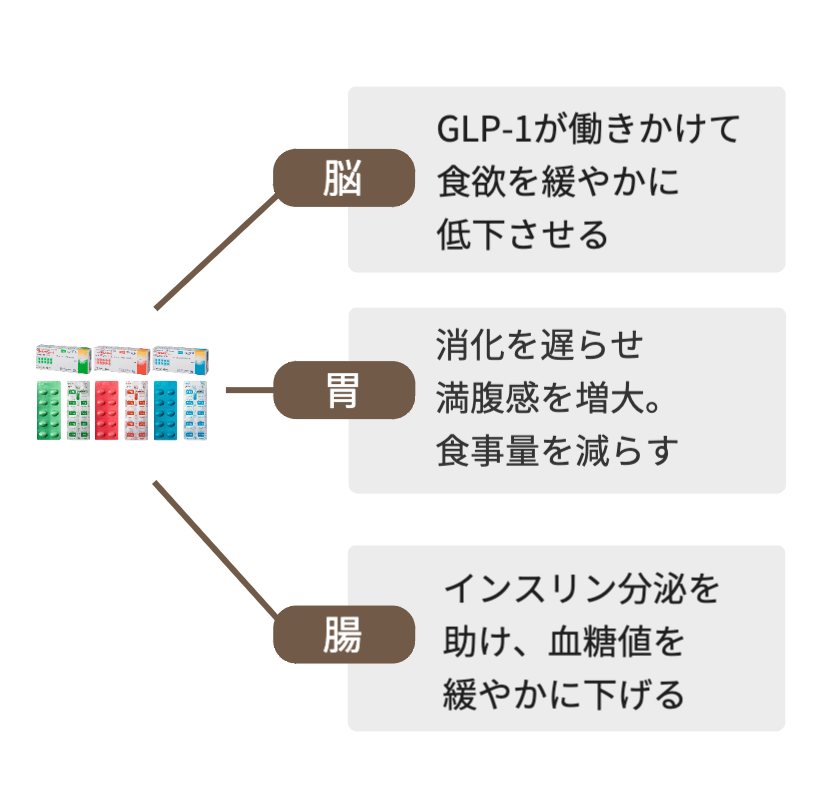 - GLP-1受容体作動薬は満腹感を持続させる作用があります。