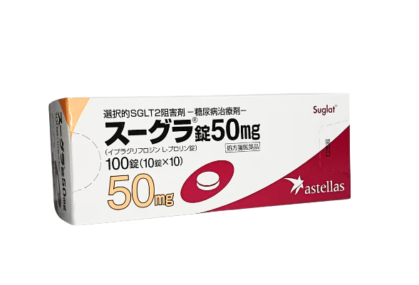 スーグラは、余分な糖を尿中に排出することで、体重減少や血糖値の改善に効果がある薬です。腎臓で糖を再吸収するSGLT2を阻害することで、過剰な糖を尿と一緒に排出させて血糖値を下げる働きがあります。